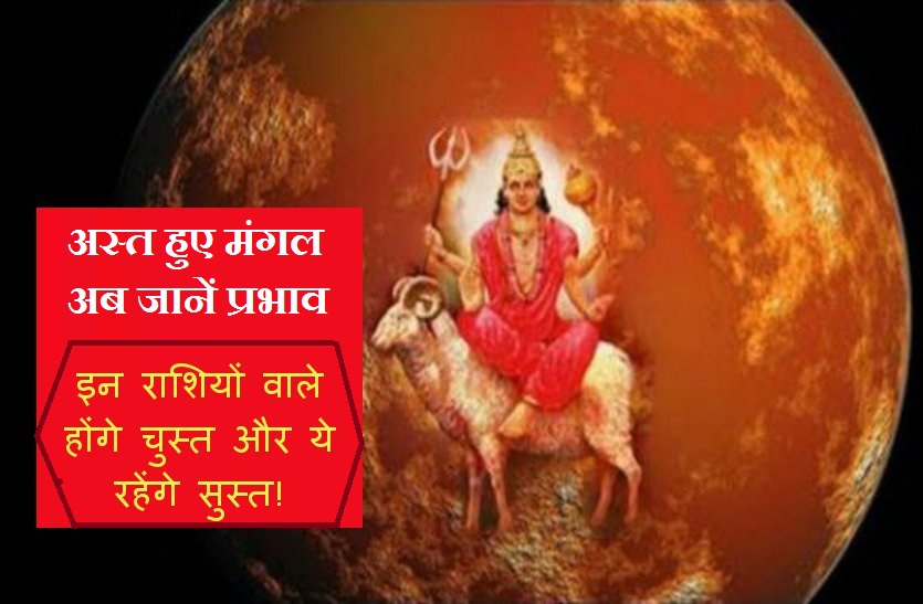 ज्योतिष गणना के अनुसार मंगल दिनांक 11 जुलाई की मध्य रात्रि 04:36 पर पश्चिम दिशा की ओर अस्त हो गए हैं, जो 23 अक्टूबर को सुबह 06:36 मिनट पर पूर्व में उदय होंगे। वहीं इससे होने वाले असर के संबंध में कहा जा रहा है कि इनके अस्त होने से भारतीय व्यापार, मानसून की पैदावार और हीरे जवाहरात और धातुओं के व्यापार पर गहरा असर पड़ेगा।