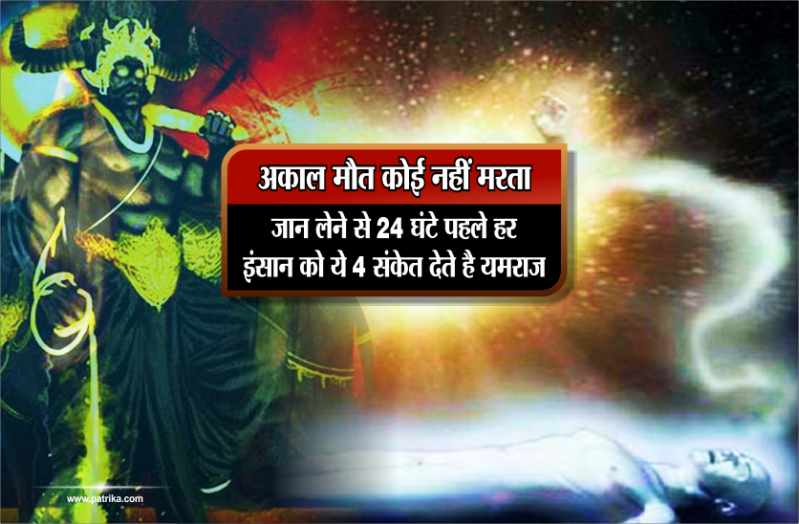 भोपाल। जीवन का सबसे बड़ा सत्य मृत्यु है। जिसने इस मृत्यु लोक में जन्म लिया है उसे एक ना एक दिन तो मरना ही होगा। दुनिया के हर इंसान के मन में कभी न कभी यह प्रश्न अवश्य उठता है कि आखिर जीवन और मृत्यु का रहस्य क्या है ,जब भी मन में मृत्यु का ख्याल आता है या किसी शवयात्रा को गुजरते हुए देखते हैं तो रोमांचित हो जाते हैं। आखिर यह मृत्यु क्या है। मृत्यु के विषय में दुनियाभर में अलग-अलग तरह की बातें और मान्यताएं प्रचलित हैं। इस तरह कि मान्यताओं और धारणाओं में से अधिकांश काल्पनिक होती हैं लेकिन कुछ सच भी होती हैं। आज हम आपको मौत से जुड़े ऐेसे संकेत बताने जा रहे हैं जो मृत्यु से पहले हर इंसान के यमराज देते हैं। जानिए क्या हैं मौत के लक्षण-
