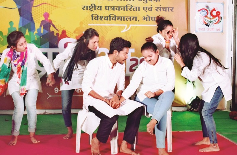 भोपाल। माखनलाल चतुर्वेदी राष्ट्रीय पत्रकारिता एवं संचार विश्वविद्यालय में चल रहे प्रतिभा-2019 का बुधवार को समापन हो गया। अंतिम दिन एकल गायन (पाश्चात्य), स्किट, एकल और समूह नृत्य की प्रतियोगिताओं का आयोजन किया गया। जहां एकल गायन में प्रतिभागियों ने अपने सुर से समां बांधा, वहीं नृत्य की प्रस्तुतियों से सबको थिरकने पर मजबूर कर दिया। स्किट हास्य-व्यंग्य नाटिका के माध्यम से स्टूडेंट्स ने समाज को संदेश दिया।