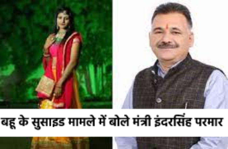 भोपाल. प्रदेश के स्कूल शिक्षा राज्यमंत्री इंदर सिंह परमार की बहू सविता परमार ने आत्महत्या कर ली. उनका बुधवार को पोस्टमॉर्टम के बाद अंतिम संस्कार कर दिया गया। अब इस केस में स्कूल शिक्षा राज्यमंत्री परमार का बयान भी सामने आया है। उनका कहना है कि सविता को हमसे और हमें उससे कोई तकलीफ ही नहीं थी। मैं खुद हैरान हूं कि उसने यह कदम क्यों उठाया। हालांकि अपने बेटे और बहू के बीच कथित विवाद की बात पर उन्होंने चुप्पी साध ली पर यह भी कहा कि हम खुद इस मामले की जांच चाहते हैं।