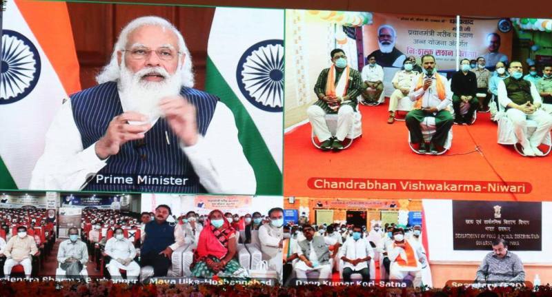 Jitendra Chourasiya, भोपाल। मध्यप्रदेश में अन्न उत्सव को सम्बोधित करते हुए प्रधानमंत्री नरेंद्र मोदी ने कहा कि मध्यप्रदेश सरकार के कारण मुझे आप लोगों से बात करने का मौका मिला। गरीबों के लिए कुछ न कुछ करने से मुझे ताकत मिलती है। 5 करोड़ लोगों को मध्यप्रदेश में एक साथ अनाज मुफ्त उपलब्ध कराने का अभियान चल रहा है। ये ही डबल इंजन की सरकार का फायदा है। केंद्र की योजनाओं को और संवार कर आगे बढ़ाया जाता है। इससे योजना की शक्ति बढ़ जाती है। मध्यप्रदेश में सभी योजनाओं में तेज गति से काम हो रहा है। प्रदेश में शनिवार को एक साथ 25434 राशन की दुकानों पर अन्न उत्सव के कार्यक्रम में पीएम मोदी को वचुर्अल तरीके से सुना गया। मुख्य समारोह भोपाल के मिंटो हॉल में हुआ। दिल्ली से वचुर्अल तरीके से जुड़े मोदी ने कहा कि केंद्र और राज्य सरकार गरीबों के लिए हर प्रयास कर रही है।