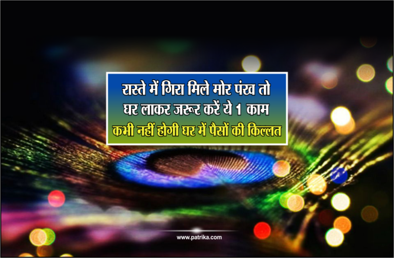 - अगर आपको रास्ते में कहीं पर भी मोर का पंख दिखाई पड़े तो उसे घर पर लाकर सफेद कपड़े में रखकर, उसे लाल धागे से बांध दें और उसे अपनी तिजोरी में रख दें। ऐसा करने से घर में कभी भी पैसों की कमी नहीं होगी।