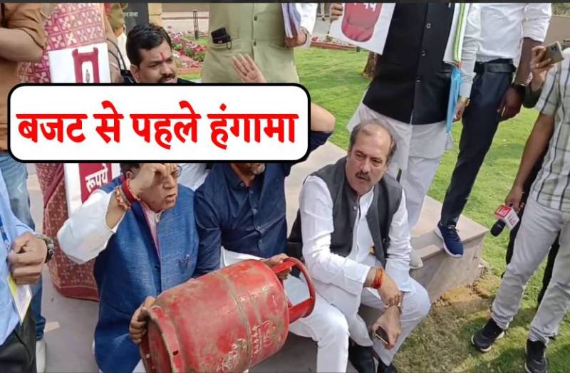 बजट पेश होने से पहले विधानसभा के बाहर हंगामा, देखें वीडियो