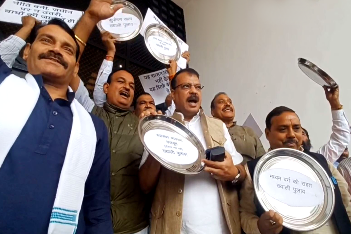 बता दें कि, राजधानी भोपाल में स्थित विधानसभा के बजट सत्र के चौथे दिन सदन की कार्यवाही शुरु होने से कांग्रेस नेता प्रतिपक्ष उमंग सिंघार विधायक दल के साथ थाली बजाकर सरकार द्वारा पेश किए बजट का विरोध करते नजर आए। हाथों में तख्ती लिए किया विपक्षी दल के नेताओं ने गांधी प्रतिमा के पास बैठकर थाली बजाकर प्रदर्शन किया। साथ ही, सरकार की ओर से पेश किए बजट को झूठ का पुलिंदा बताया।