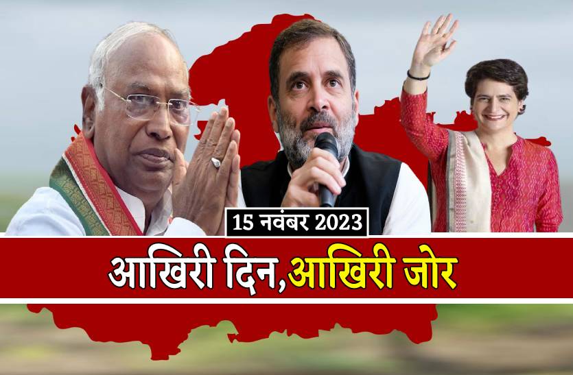 मध्यप्रदेश विधानसभा चुनाव 2023 के लिए चुनाव प्रचार का 15 नवंबर को आखिरी दिन है। शाम को चुनाव प्रचार थम जाएगा और आखिरी दिन कांग्रेस दोनों ने मध्यप्रदेश में अपनी पूरी ताकत झोंक दी है और पार्टी के आला नेता प्रदेश में चुनावी रैलियां करने उतर आए हैं। चुनाव प्रचार के आखिरी दिन प्रदेश का चुनावी पारा बेहद हाई रहने वाला है तो चलिए बताते हैं आपको कौन सा नेता किस जगह पर और कितने बजे चुनावी सभा करेंगे।