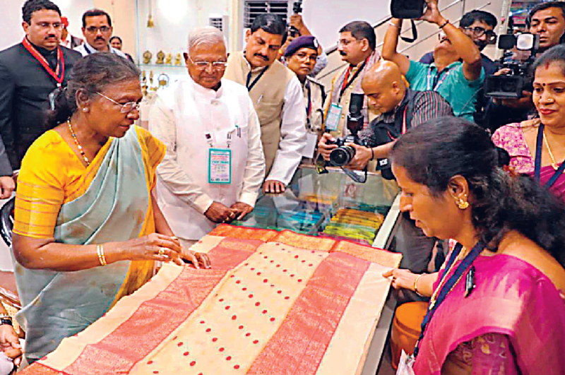 मृगनयनी एम्पोरियम में साड़ी पसंद करतीे राष्ट्रपति द्रोपदी मुर्मू.