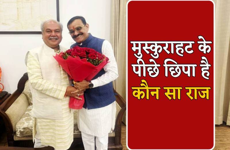 मध्यप्रदेश में सीएम के नाम को लेकर चल रहे सियासी घटनाक्रमों के बीच दिल्ली में बीजेपी प्रदेश अध्यक्ष वीडी शर्मा और नरेन्द्र सिंह तोमर के बीच मुलाकात हुई। इस दौरान नरेन्द्र सिंह को वीडी शर्मा के द्वारा गुलदस्ता भेंट करते हुए एक तस्वीर सामने आई है जिसमें दोनों नेता बेहद मुस्कुराते हुए नजर आ रहे हैं। इस तस्वीर के सामने आने के बाद एक बार फिर कयास लगाए जाने शुरु हो गए हैं और लोगों का कहना है कि आखिर वो कौन सी बात है जिसे छिपाकर ये दोनों नेता इतने मुस्कुरा रहे हैं।