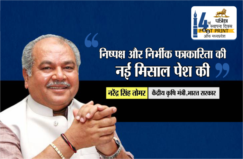 भोपाल। केंद्रीय कृषि नरेंद्र सिंह तोमर (narendra singh tomar ) का कहना है कि मध्यप्रदेश में पत्रिका समाचार पत्र के आने के बाद से जनता-जनार्दन की आवाज को एक नया मंच मिला है। संवाददाताओं की ओर से गांव-कस्बों एवं शहरों की जनसमस्याओं की ओर शासन-प्रशासन का ध्यान आकर्षिद करने से इनके शीघ्र निराकरण में सहाय होती है।