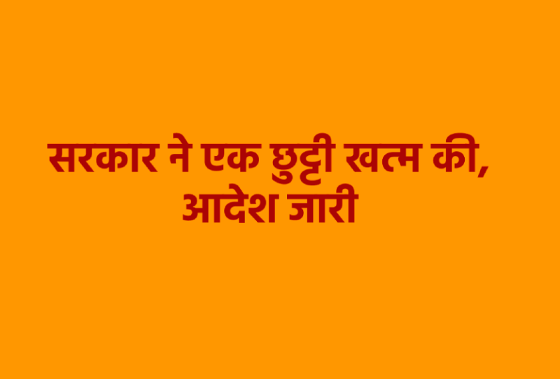 भोपाल. मध्यप्रदेश सरकार ने नवंबर माह में कई अवकाश घोषित किएं. मध्यप्रदेश में प्रदेश के स्थापना दिवस के अवसर पर एक नवंबर को सभी सरकारी दफ्तरों में आधे दिन का अवकाश घोषित किया गया था। सभी सरकारी कर्मचारी 1 नवंबर को आधे दिन काम करने के बाद सरकारी कार्यक्रमों में शिरकत करने चले गए थे। इस बार दफ्तरों में 4 नवंबर को नामदेव जयंती का अवकाश भी दिया गया था। अब सरकार ने नवंबर माह का एक अवकाश खत्म कर दिया है. इसके लिए आदेश भी जारी कर दिए गए हैं.