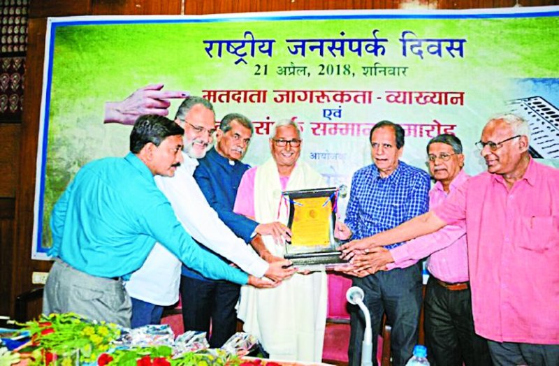 भोपाल। पब्लिक रिलेशन सोसायटी द्वारा राष्ट्रीय जनसंपर्क दिवस के अवसर पर शनिवार को होटल पलाश रेसीडेंसी में मतदाता जागरुकता पर व्याख्यान और लोकसंपर्क सम्मान समारोह का आयोजन किया गया। इस दौरान माखनलाल चतुर्वेदी पत्रकारिता विवि के कुलपति जगदीश उपासने ने कहा कि आजकल आपराधिक प्रवृत्ति के लोग राजनीति में आ गए हैं। मतदाताओं को सिर्फ वोट देते वक्त ही नहीं बल्कि पूरे 5 साल तक जागरुक होना चाहिए। वरिष्ठ पत्रकार गिरिजा शंकर ने इलेक्शन रिफॉर्म को बहुत जरूरी बताया। उन्होंने कहा कि मतदाता को जागरुक होना चाहिए लेकिन इससे पहले राजनीतिक दलों को भी जागरुक किया जाना बहुत जरूरी है और जनता को जनमत के द्वारा इसके लिए दबाव बनाना चाहिए।