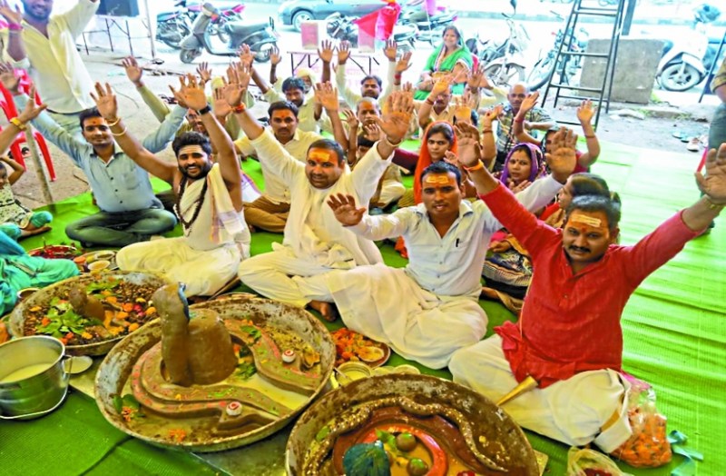 बाल हनुमान, काली मंदिर के सामने चूनाभट्टी में ब्रह्म समागम सवर्ण जनकल्याण समिति की ओर से पार्थिव शिवलिंग निर्माण के साथ ही पूजा अर्चना वैदिक पंडितों की मौजूदगी में की जा रही है। आयोजन आरक्षण को आर्थिक आधार पर लागू करने की कामना के साथ किया जा रहा है। पं. यशोवर्धन द्विवेदी ने बताया, आयोजन के दूसरे दिन मिट्टी से सोमनाथ, नागेश्वर, त्रयम्बेकश्वर ज्योर्तिलिंगों का निर्माण किया गया। श्रद्धालुओं ने दो हजार रूद्र पार्थिव शिवलिंग का निर्माण किया। पंचामृत से रूद्राभिषेक कर आरती की गई। इस मौके पर बड़ी संख्या में श्रद्धालु उपस्थित थे।