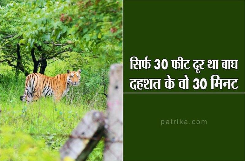 मौत को इतनी करीब से देखने के बाद जब बाघ ने फेंसिंग को पार किया, तो हमें थोड़ी हिम्मत आ गई। कैमरा ऑन किया ही था कि बाघ ने पलटकर देखा तो हमारे हाथ रुक गए, लेकिन बगैर हिले-ढुले फोटो क्लिक कर ही लिया। खुले जंगल में उसकी एक अलग ही मस्तीभरी चाल थी, आंखों में चमक थी। ऐसी स्थिति में पाठकों के लिए फोटो खींचना अपने आप में अद्भुत अनुभव था। (जैसा अजय शर्मा ने बताया)
