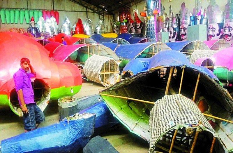 भोपाल/भेल। भेल के नटराज हॉल में रावण का पुतला बनाने का काम साहू परिवार बीते 59 साल से कर रहा है। पिता नन्नूलाल साहू के अस्वस्थ होने के कारण यह काम उनके बेटे ओमप्रकाश साहू, मोहन साहू और सोहन साहू संभाल रहे हैं। मोहन ने बताया कि वह रावण का पुतला बनाने का काम छह माह पहले शुरू कर देते हैं। औसतन 10 फीट से 51 फीट तक का पुतला बनाते हैं।
