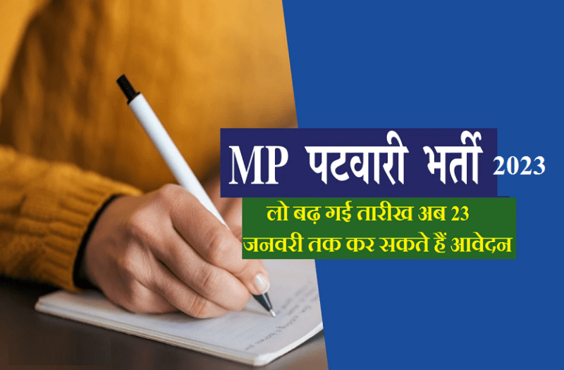 MP Patwari Bharti 2023 : मध्य प्रदेश पटवारी भर्ती के लिए आवेदन नहीं कर सके उम्मीदवारों के लिए राहत भरी खबर है। दरअसल कर्मचारी चयन बोर्ड ने पटवारी भर्ती परीक्षा के लिए आवेदन करने की अंतिम तारीख को बढ़ाकर अब 23 जनवरी कर दिया है। पहले यह 19 जनवरी नियत की गई थी, यानि पटवारी और ग्रुप-2 सब ग्रुप-4 के 9073 रिक्त पदों पर भर्ती के लिए आज आवेदन प्रक्रिया का आखिरी दिन था। एमपी पटवारी भर्ती के लिए जो कैंडिडेट आवेदन नहीं कर पाए हैं उनके पास अब मौका है। वे एमपी व्यापम की वेबसाइट पर जाकर ऑनलाइन आवेदन कर सकते हैं।