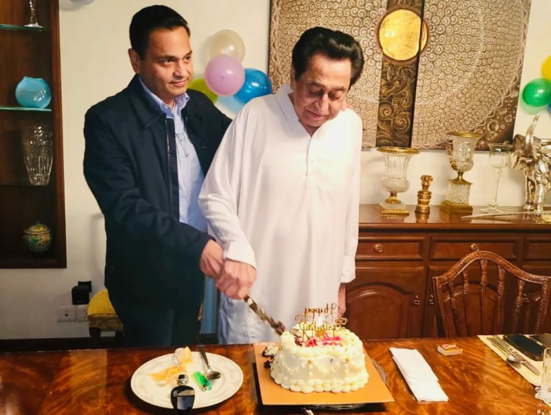 कमलनाथ ने जन्मदिन पर बेटे नकुलनाथ के साथ केक काटा- X image