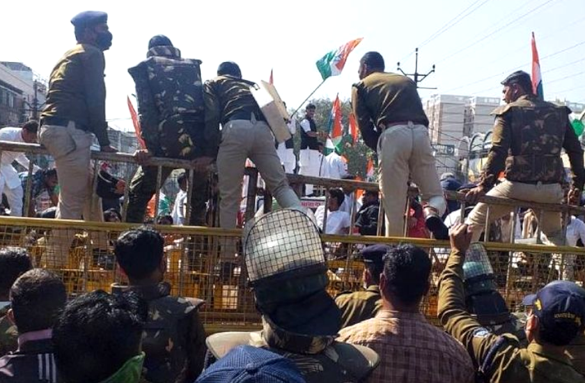 किसानों के लिये कांग्रेस का प्रदर्शन : राजभवन मार्ग पर पुलिस ने छोड़े आंसू गैस के गोले, पूर्व CM समेत 20 नेता गिरफ्तार