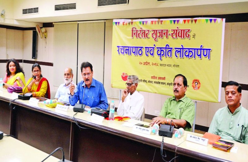 भोपाल। साहित्य अकादमी, मप्र संस्कृति परिषद् द्वारा शुक्रवार को स्वराज भवन में निरंतर सृजन-संवाद का आयोजन किया गया। इस दौरान कार्यक्रम की अध्यक्षता कर रहे वरिष्ठ साहित्यकार यतीन्द्र नाथ 'राही' ने कहा कि साहित्य समाज का दर्पण है। वह समाज से निर्मित होता ही है। निर्मायक भी होता है। वर्तमान को संवार कर भविष्य के लिए नूतन पथ तैयार करने का दायित्व साहित्यकार का होता है। विधा कोई भी हो रचनाकार ने अपना धर्म जितनी खूबसूरती से निभाया है, यही रचना के मूल्यांकन की कसौटी होनी चाहिए।