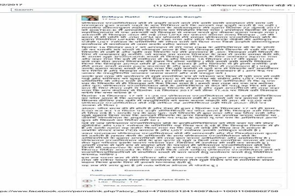 भोपाल। एमएलबी कॉलेज में अर्थशास्त्र की प्रोफेसर डॉ. माया अवस्थी ने फेसबुक(Facebook) पर एक पोस्ट कर प्रोफेशनल एग्जामिनेशन बोर्ड (Professional Examination Board officers) के कुछ अधिकारियों पर गंभीर आरोप लगाए हैं। उनका कहना है कि पीईबी के कुछ अधिकारी उनसे अपराधी की तरह पेश आए। उन्हें तीन दिनों तक प्रताडि़त किया। प्रोफेसर ने मुख्यमंत्री, महिला आयोग, मानव अधिकार आयोग समेत तकनीकी शिक्षा विभाग के प्रमुख सचिव को शिकायत की है।
