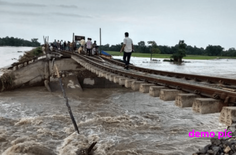 रेलवे लाइनों की मिट्टी—गिट्टी बह गई
