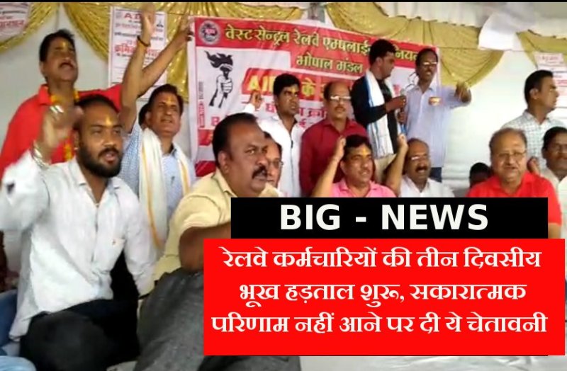 भोपाल। आॅल इंडिया रेलवे मैंस फेडरेशन के आह्वान पर रेल मजदूर यूनियन ने आज यानि मंगलवार से तीन दिवसीय भूख हड़ताल शुरू कर दी है। यह भूख हड़ताल 10 मई तक चलेगी। इसी के चलते मंगलवार को भोपाल में भी रेलवे कर्मचारी 3 दिन के लिए भूख हड़ताल पर बैठे।