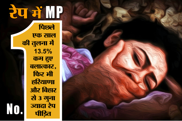 यहां पिछले साल दुष्कर्म के 4391 मामले दर्ज किए गए हैं। जबकि 2014 में भी मध्यप्रदेश में दुष्कर्म के मामले सबसे ज्यादा थे। यहां 5076 मामले दर्ज किए गए थे। 2015 की इस रिपोर्ट में दूसरे नंबर पर रहा महाराष्ट्र, यहां 4144 मामले दर्ज हुए हैं। तीसरे नंबर पर राजस्थान का नाम शामिल है। यहां 3644 मामले पिछले एक साल में दर्ज किए गए।