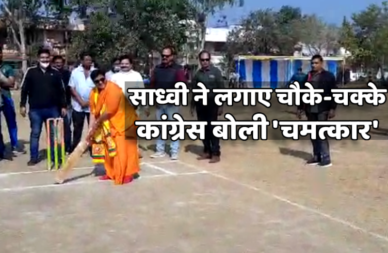 भोपाल. अपनी बीमारियों के चलते अधिकतर व्हील चेयर पर नजर आने वाली भोपाल सांसद साध्वी प्रज्ञा सिंह ठाकुर वैसे तो कभी गरबा, कत्री बास्केटबॉल खेलती हैं तो कभी ढोल की थाप पर थिरकती भी नजर आ जाती हैं। इन सब के बाद सांसद ठाकुर शनिवार को क्रिकेट के मैदान में गैंदबाज पर चौके-छक्के लगाती नज़र आई हैं। दरअसल, भोपाल में आयोजित क्रिकेट प्रतियोगिता के उद्घाटन के अवसर पर पहुंची साध्वी खुद को रोक नहीं पाई और मैदान में बल्लेबाजी का जोहर दिखाने उतर गईं। प्रज्ञा ठाकुर का क्रिकेट खेलते हुए वीडियो भी सामने आया है, जिसपर कांग्रेस ने सवाल उठाते हुए दुनिया का आठवां अजूबा तक बता दिया है।