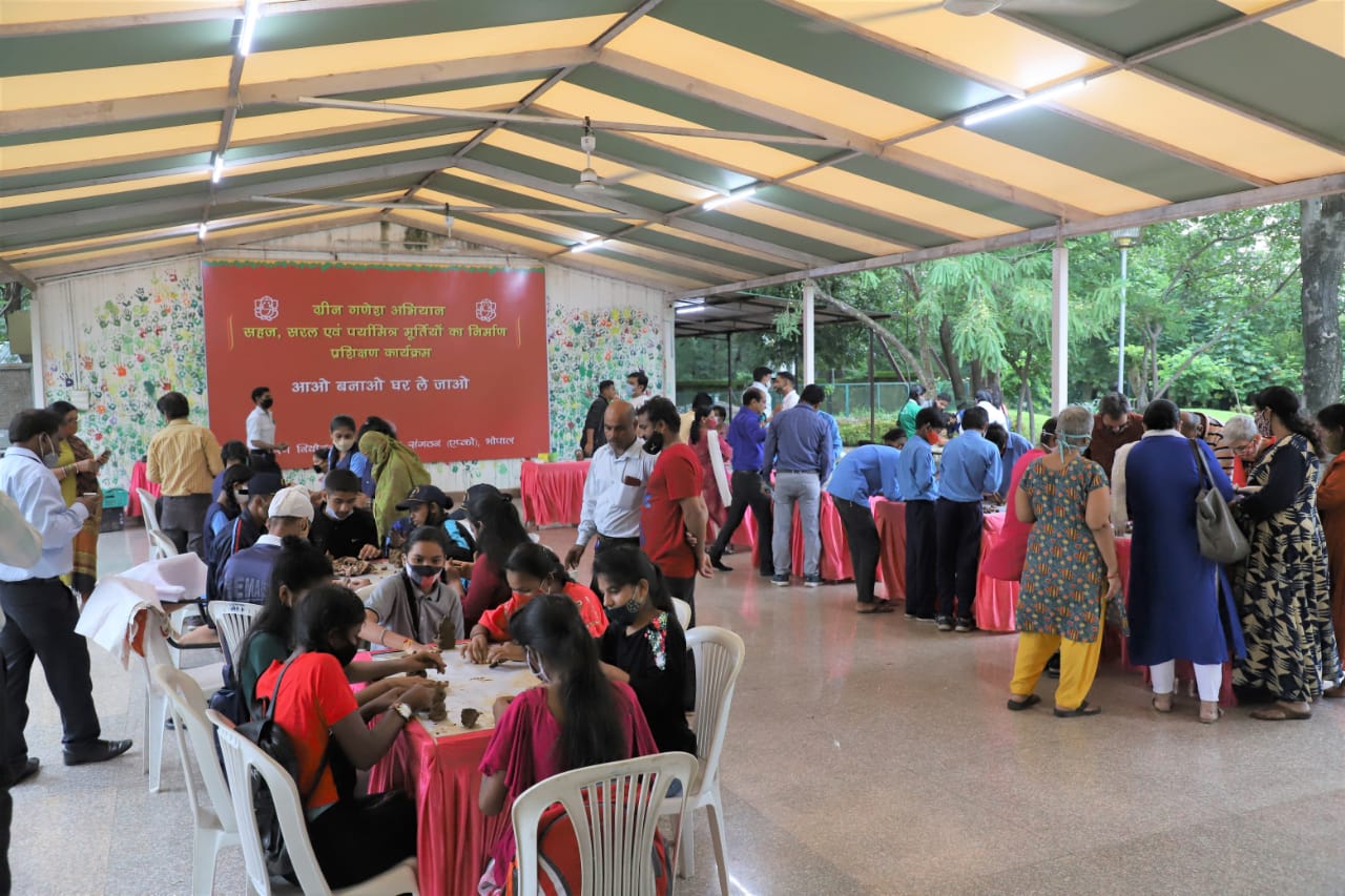 गणेश उत्सव के पूर्व एप्को की ओर से ग्रीन गणेश प्रतिमा निर्माण शिविर का शुभारंभ किया गया। इसके पीछे उद्देश्य यहीं है कि पीओपी से बनी प्रतिमाएं और रासायनिक रंगों के कारण जल स्त्रोत प्रदूषित न हो। इसलिए इस अभियान के तहत लोगों को गणेश प्रतिमाएं बनाना सीखाया जा रहा है। इस दौरान लोगों ने गणेश प्रतिमाएं बनाई और घरों में ले गए। शिविर के पहले दिन शास नवीन उमावि, अरेरा कालोनी, शा उमावि सरोजिनी नायडू, कैरियर कालेज, गोविंदपुरा के शिक्षकों एवं विद्यार्थियों तथा अव्यांश वेलफेयर सोसायटी के सदस्यों सहित लगभग 100 प्रतिभागियों ने भाग लिया जिन्हे एप्को के प्रशिक्षकों द्वारा मिट्टी से गणेश प्रतिमा बनाना सिखाया गया। प्रतिभागी अपने हाथों से बनाई गणेश प्रतिमा अपने साथ लेकर गये। आओ बनाओ घर ले जाओ की अवधारणा पर आधारित यह शिविर 8 सितम्बर तक प्रतिदिन 3 से 6 बजे तक चलेगा। इस अवसर पर एप्को के अधीक्षण यंत्री जेपी. नामदेव, जलवायु परिवर्तन ज्ञान प्रबंधन केन्द्र के समन्वयक लोकेन्द्र ठक्कर, प्रशासनिक अधिकारी मनोहर पाटिल, कार्यपालन यंत्री राजेश मिश्रा सहित अनेक लोग उपस्थित थे।