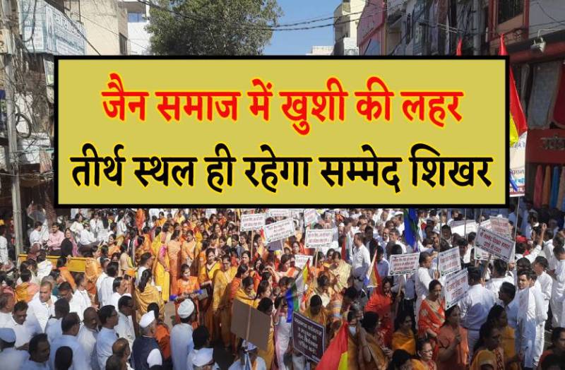 आपको बतादें कि जिस दिन से झारखंड के गिरिडीह स्थित जैन तीर्थ सम्मेद शिखर जी को पर्यटन स्थल बनाने का नोटिफिकेशन जारी हुआ था, तभी से जैन समाज का विरोध प्रदर्शन शुरू हो गया था, बुधवार को तो जैन समाजजनों ने अपने काम धंधे बंद करके धरना प्रदर्शन शुरू कर दिया था, इसी के साथ विशाल रैली निकालकर सरकार के खिलाफ नारेबाजी भी की, जैन समाज को इस संघर्ष का लाभ् मिला और सरकार को जैन समाज के आगे झुकने पर मजबूर होना पड़ा।