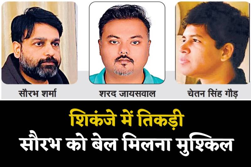 Saurabh Sharma Case update: लोकायुक्त की लापरवाही से 7 दिन पहले जमानत पा चुके परिवहन विभाग के पूर्व आरक्षक सौरभ शर्मा, चेतन सिंह गौड़, शरद जायसवाल पर ईडी ने शिकंजा बढ़ाया। लोकायुक्त ने 60 दिन में चार्जशीट पेश न कर जो गलती की, ईडी ने नहीं की। 60 दिन (11 अप्रेल) से 3 दिन पहले मंगलवार को ईडी ने विशेष कोर्ट में 115 पेज की चार्जशीट के साथ सीडी पेश की। सौरभ-पत्नी दिव्या, मां उमा, साले रोहित तिवारी, विनय हसवानी, प्यारेलाल केवट, चेतन,, शरद समेत 12 को आरोपी बनाया है। अविरल कंस्ट्रक्शन, अविरल इंटरप्राइजेज, इंटरेस्ट यूआर के डायरेक्टर और 1 ट्रस्ट भी आरोपी हैं।