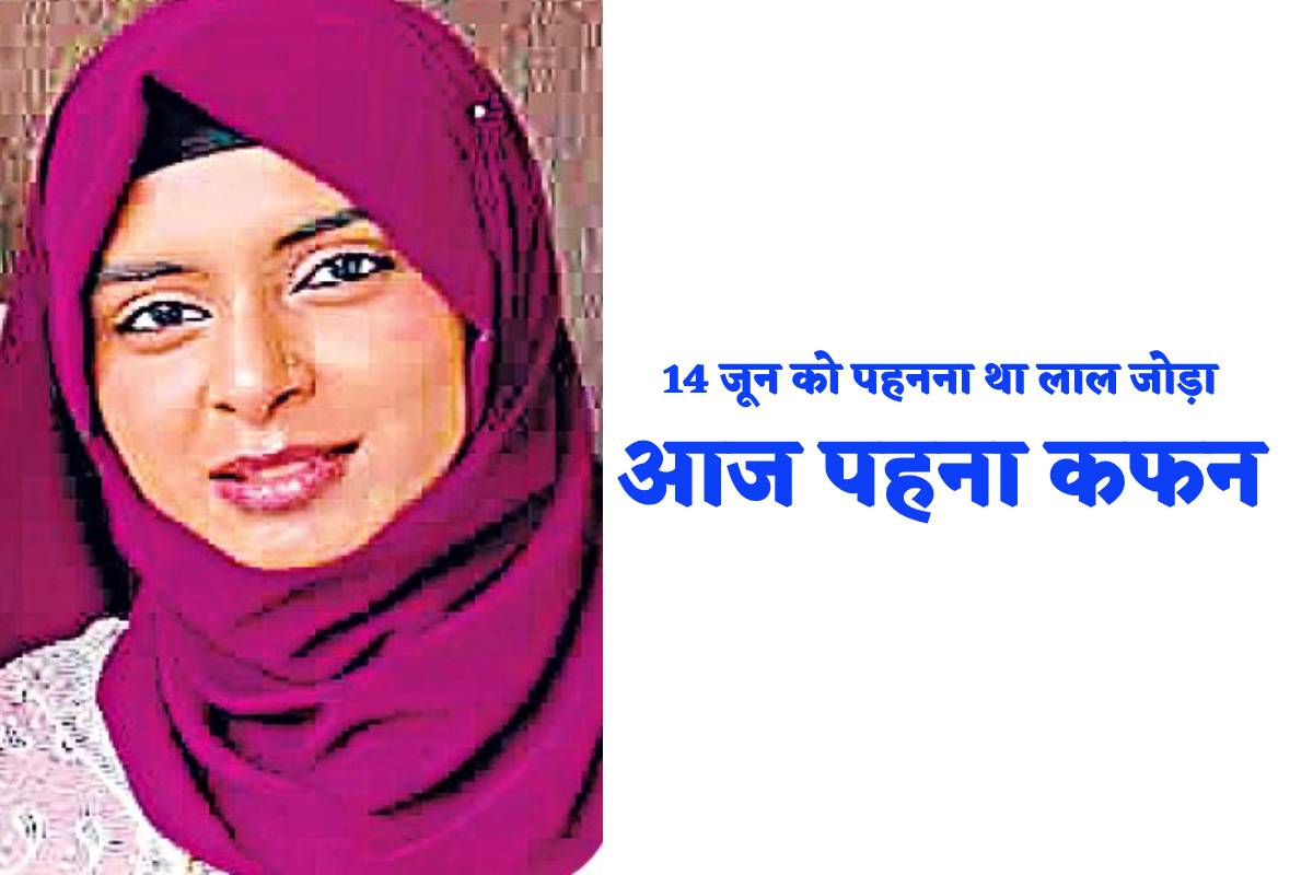 आयशा घर में बड़ी थी। उसका एक छोटा भाई भी है जिसने हाल ही में इंजीनियरिंग की पढ़ाई की है। डॉक्टर आयशा शादी को लेकर बेहद खुश थी। मैरिज गार्डन से लेकर कुक तक सब उन्होंने अपनी मर्जी से बुक कराया था। उसके होने वाले पति अदनान रेलवे में लोको पायलट हैं। आयशा और अदनान एक- दूसरे के लिए कपड़े पसंद करा रहे थे। पांच दिन बाद से आयशा छुट्टी लेने वाली थी।