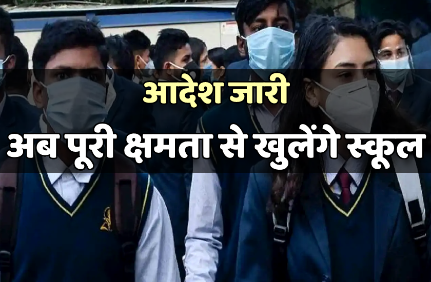 बड़ी खबर : कक्षा 1 से 12वीं तक पूरी क्षमता से खुलेंगे स्कूल, आदेश जारी