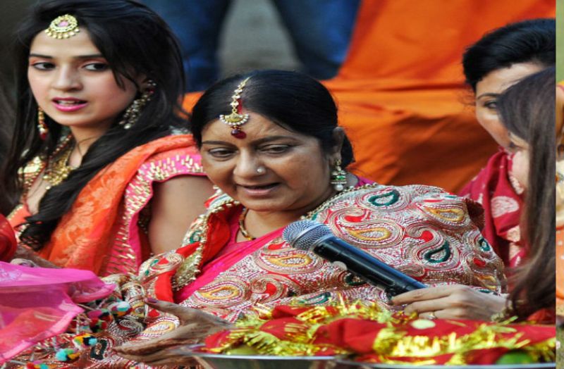 साल 2013 की कुछ तस्वीरें हम आपको दिखाते हैं, जब सुषमा स्वराज के घर पर करवा चौथ का आयोजन किया गया था। इस दौरान महिलाएं सोलह ऋंगार में नजर आती थीं। सुषमा भी इस दौरान लाल रंग की साड़ी में पति की दीर्घायु के लिए व्रत रखती थी।