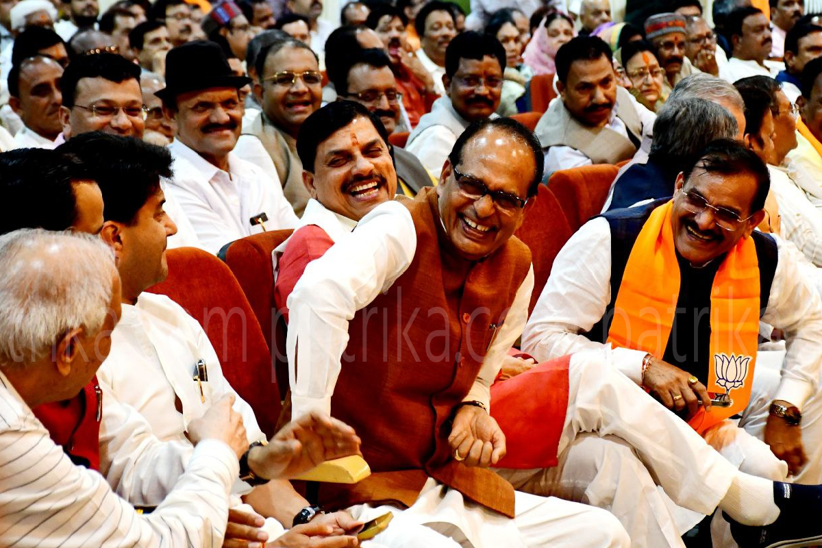 भाजपा कार्यालय में प्रदेश अध्यक्ष के लिए नामांकन का समय करीब 6:30 बजे तक था। इससे पहले जब केंद्रीय मंत्री शिवराज सिंह जाने लगे तो मंच से चुनाव अधिकारी धर्मेंद्र प्रधान ने कहा - 'अभी टाइम नहीं हुआ है'। धर्मेंद्र प्रधान की बात सुन शिवराज वापस आकर अपनी जगह पर बैठ गए। वरिष्ठ नेता विक्रम वर्मा ने कुछ कहा तो सीएम डॉ. मोहन यादव, केंद्रीय मंत्री शिवराज, ज्योतिरादित्य सिंधिया(Jyotiraditya Scindia), प्रदेश अध्यक्ष वीडी शर्मा सहित पीछे बैठे नेता ठहाके लगाकर हंस पड़े।