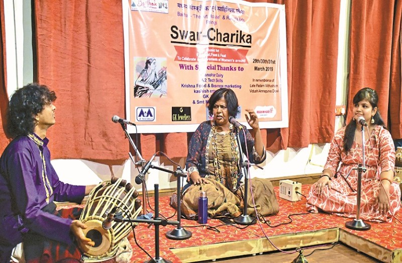 इसके बाद इंदौर की खयाल गायिका शोभा चौधरी ने राग मारू विहाग का चयन करते हुए कार्यक्रम को आगे बढ़ाया। उनके साथ तबले पर इंदौर से आईं संगीता अग्निहोत्री और हारमोनियम पर डॉ. रचना शर्मा ने संगत दी। आयोजन के दौरान सुबह 10 से रात 8 बजे तक महिलाओं द्वारा चित्र कला व क्राफ्ट की कलात्मक कृतियों का भी प्रदर्शन किया जा रहा है।