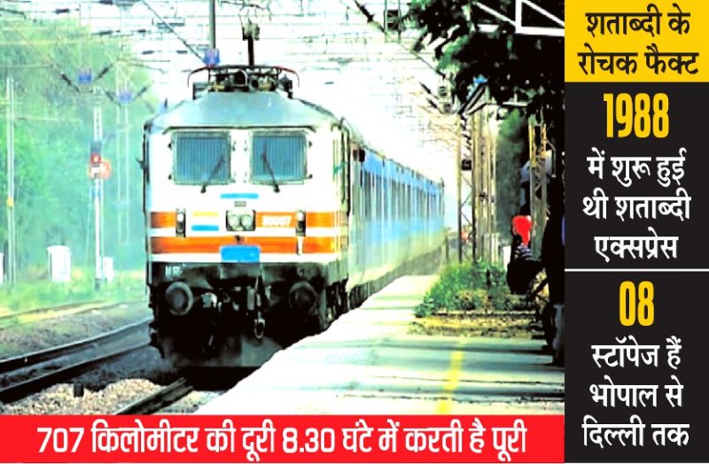 आपको बता दें कि भोपाल से दिल्ली और दिल्ली से भोपाल के बीच चलने वाली शताब्दी एक्सप्रेस ने नवंबर 2017 में अपने 28 साल पूरे किए थे। इस ट्रेन को सबसे पहले नई दिल्ली से झांसी के बीच चलाया गया था। फिर बाद में ट्रेन को भोपाल तक बढ़ा दिया गया था। ट्रेन में यात्री सुविधाओं को लेकर रेलवे का विशेष फोकस रहता है।