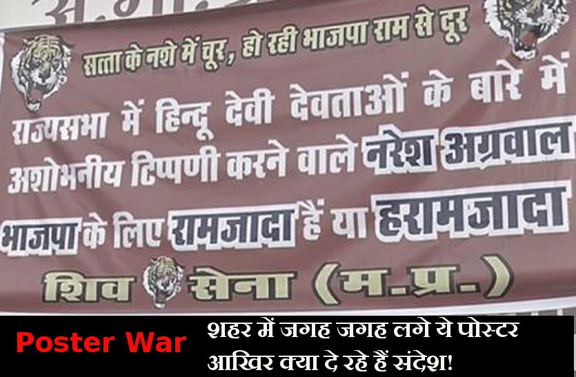 भोपाल।मध्य प्रदेश की राजधानी भोपाल में शिवसेना ने नरेश अग्रवाल के बहाने भाजपा पर जमकर हमले किए हैं। दरअसल शहर में कुछ जगह शिवसेना ने नरेश अग्रवाल को लेकर पोस्टर लगाए हैं। साथ ही इन पोस्टरों में शिवसेना ने बीजेपी को राम से दूर होती पार्टी बताया है।