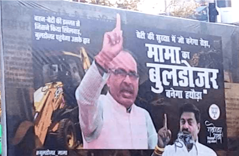 विधायक के ऐसा होर्डिंग लगवाने की वजह भी है। दरअसल शिवराज ने प्रदेश में अपराधियों के प्रति बेहद सख्त रुख अपनाया हुआ है। गंभीर किस्म के अपराध करने वाले हर अपराधियों के घरों में बुलडोजर से अवैध हिस्से गिराए जा रहे हैं। सोमवार को सिवनी के कुरई थाना इलाके में दुष्कर्म के आरोपी का अवैध निर्माण धराशायी किया गया। इससे पहले श्योपुर में नाबालिग लड़की के साथ गैंगरेप के तीन आरोपियों के मकान तोड़े गए। वहीं, एक आरोपी के खेतों में खड़ी फसल भी जेसीबी से नष्ट की गई। साथ ही साथ रायसेन में हुए सांप्रदायिक विवाद की घटना के बाद, इसमें शामिल अपराधियों के मकानों के अवैध हिस्सों पर भी बुलडोजर चलाकर उन्हें जमीदोंज किया गया। इसके बाद से ही शिवराज को 'मामा बुलडोजर' के रूप में प्रदर्शित किया जाने लगा है।