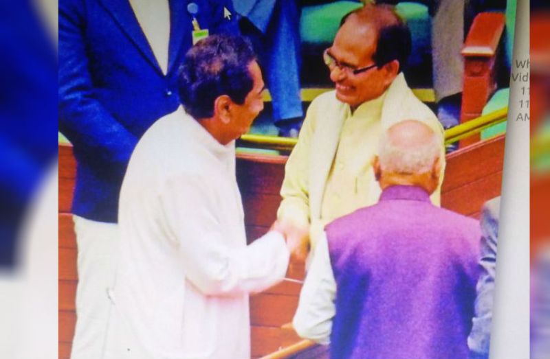 विधायक पद की शपथ लेने के बाद पूर्व सीएम शिवराज सिंह चौहान ने मौजूदा मुख्यमंत्री कमलनाथ से मुलाकात की। इस दौरान दोनों नेताओं से एक दूसरे से हाथ मिलाया और कुछ देर तक बात की। कमलनाथ के साथ मंत्री डॉ गोविंद सिंह और आरिफ अकील मौजूद थे।