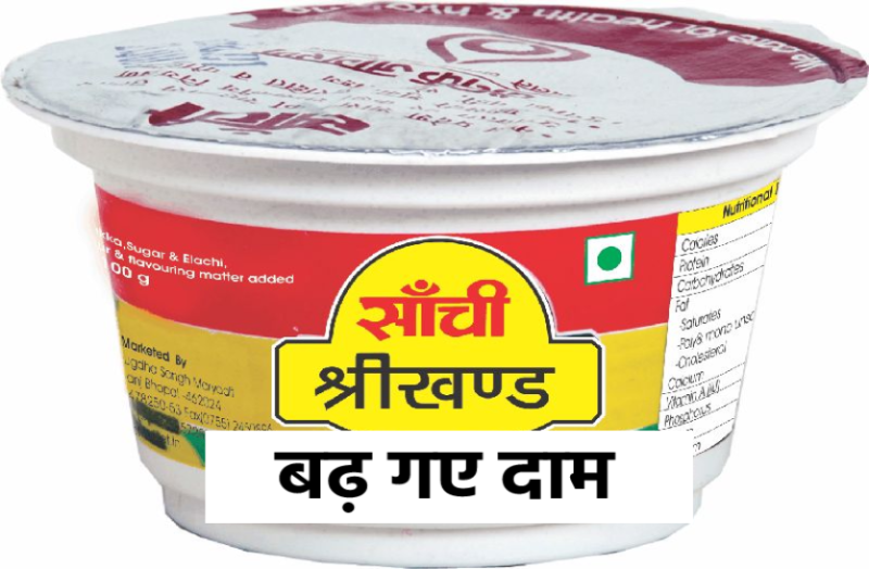 भोपाल। सांची ब्रांड के श्रीखंड के दाम बढ़ाए गए हैं। सांची श्रीखंड के दामों में 5 रुपए की बढ़ोत्तरी की गई है। सांची के कुछ अन्य उत्पादों के दामों में भी बढ़ोत्तरी की गई है हालांकि इनकी जानकारी अभी आधिकारिक रूप से नहीं दी गई है। सांची ब्रांड भोपाल सहकारी दुग्ध संघ का उत्पाद है और इसका श्रीखंड सबसे ज्यादा बिक्री वाले उत्पादों में शामिल है। भोपाल सहकारी दुग्ध संघ द्वारा कुछ दिन पूर्व ही सांची दूध के दाम भी बढ़ाए गए थे।