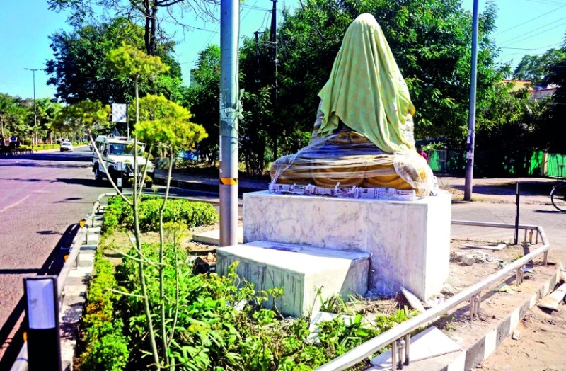 व्यापमं चौराहा पर रात में रखी प्रतिमा, आपत्ति के बाद दिन में हटा ली
