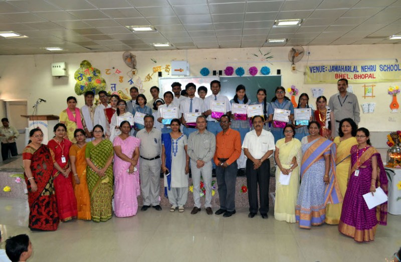 भोपाल। बीएचईएल के मानव संसाधन, राजभाषा विभाग द्वारा जवाहरलाल नेहरू उच्चतर माध्यमिक स्कूल में हिंदी भाषा के प्रोत्साहन के लिए निबंध प्रतियोगिता का आयोजन किया गया था। गुरुवार को प्रतियोगिता के विजेता स्टूडेंट्स को पुरस्कृत करने के लिए पुरस्कार वितरण समारोह आयोजित किया गया। कार्यक्रम के दौरान भेल शिक्षा मंडल के अध्यक्ष एवं महाप्रबंधक (फीडर्स) एम हल्दर द्वारा कक्षा 9वीं, 10वीं एवं 12वीं के प्रथम, द्वितीय एवं तृतीय विजेता स्टूडेंट्स को स्मृति चिन्ह और प्रशस्ति पत्र देकर सम्मानित किया।
