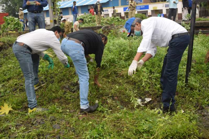 रेलवे स्टेशन परिसर में की साफ-सफाई, लोगों को प्लास्टिक का उपयोग नहीं करने की दी समझाइश
