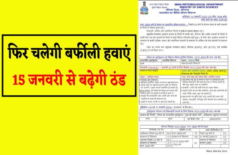 फिर चलेगी बर्फीली हवाएं, 15 जनवरी से बढ़ेगी ठंड, इन जिलों में येलो अलर्ट जारी