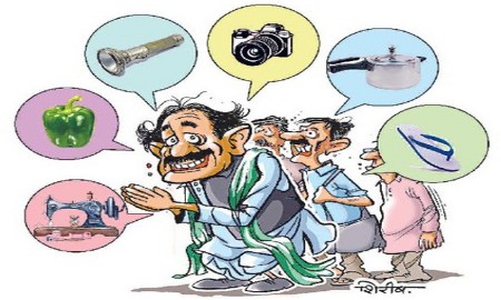 इसा बार निर्वाचन आयोग की तरफ से जूता, चप्पल, गैस सिलेंडर, कड़ाही, नूडल्स कटोरा, रोड रोलर, पिन के अलावा एसी, अलमारी, एप्पल, ऑटो रिक्शा, बेबी वॉकर, गुब्बारा, चूड़ियां, फलों से भरी टोकरी, बल्ला, बल्लेबाज, बैटरी टॉर्च, मोतियों का हार, बेल्ट, बेंच, साइकिल पंप, दूरबीन, बिस्कुट, ब्लैक बोर्ड, आदमी व पाल युक्त नौका, बक्सा, डबल रोटी, ब्रेड टोस्टर, ईंटें, ब्रीफकेस, ब्रुश, बाल्टी, केक, कैल्कुलेटर, कैमरा, केन, शिमला मिर्च, कैरम बोर्ड, फूलगोभी, सीसीटीवी कैमरा, जंजीर, चक्की, चपाती रोलर, शतरंज का बोर्ड, चिमनी, चिमटी, कोट, नारियल फार्म, कलर ट्रे और ब्रुश, कम्प्यूटर , माउस, चारपाई, क्रेन, घन, कटिंग फ्लायर, हीरा, डीजल पंप, डिश एंटीना, डोली, द्वारा हैंडल, दरवाजे की घंटी, ड्रिल मशीन, डंबल, कूड़ादान, कान की बालियां, बिजली का खंभा, लिफाफा, एक्सटेंशन बोर्ड, फब्बारा, कीप, प्रेसर कुकर सहित 192 चुनाव चिन्ह उम्मीदवारों को देने के लिए चारी किए गए थे।