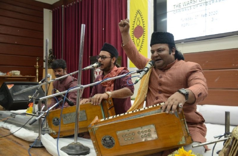 भोपाल. स्पीक मैके भोपाल चैप्टर की ओर से राजीव गांधी प्रौद्योगिकी विवि और एलएनआईयू में शाम-ए-कव्वाली का आयोजन किया। इस दौरान देश के प्रख्यात कव्वाल वारसी बन्धुओं ने कव्वाली और सूफी गायन की सुमधुर प्रस्तुति दी। कार्यक्रम की शुरुआत में वारसी बन्धु अमजद खान वारसी और मोतिशय्यार वारसी ने अमीर खुसरो की रचना 'अली इमाम है में उनका गुलाम हूं... पेश की। इसके बाद उन्होंने संत कबीर की रचना 'अली जी वीर हो, बलवान हो, धरती पिता तुम ....सुनाई। शाम-ए-कव्वाली में वारसी बंधुओं द्वारा 'दमा-दम -मस्त कलंदर ...., ढलता सूरज धीरे-धीरे ढलता है ढल जाएगा..., मेरे रश्के कमर जैसी कव्वाली पेश कर श्रोताओं को मंत्रमुग्ध किया। वारसी बंधुओं ने हजरात खुसरों की रचना 'मनकुन तो मौला, खवाजा अलीउल मौला, दरादिल .... सुनाई। साथ ही 'भर दे झोली मेरी या मोहम्मद..., की संगीतमय प्रस्तुति दी। वारसी बंधुओं के साथ संगतकार के रूप में की-बोर्ड पर शोएब वारसी एवं तबले पर इकत्तेकार वारसी ने संगत दी।