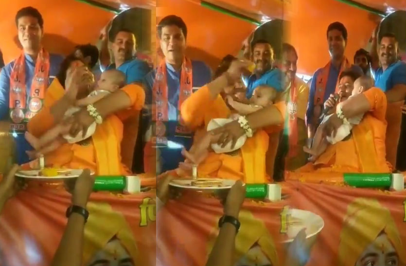 वहीं, एक फैमिली ने उनसे अपनी बच्ची का नामकरण करवाया। उस बच्ची का परिवार वालों ने प्रज्ञा नाम रखा है। प्रचार के दौरान साध्वी ने प्रज्ञा को अफने गोद में ली और तिलक लगाकर उसका नामकरण संस्कार किया। साथ ही कहा कि इस बच्ची का नाम प्रज्ञा है। वहीं, परिवार के सदस्यों ने पीछे से आवाज दी कि प्रज्ञा डागा।