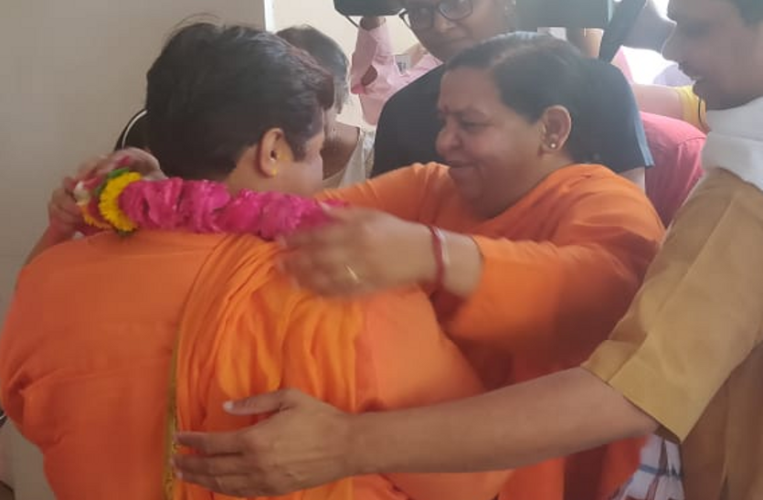 भोपाल. मध्यप्रदेश के भोपाल लोकसभा सीट से भाजपा उम्मीदवार साध्वी प्रज्ञा ठाकुर सोमवार को केंद्रीय मंत्री उमा भारती से मिलने पहुंची। इस दौरान उमा भारती ने साध्वी प्रज्ञा ठाकुर का तिलक लगाकर स्वागत किया। उमा भारती ने कहा कि प्रज्ञा का चुनाव मैदान मे उतरना गर्व की बात। उन्होने कहा कि प्रताड़ना के कारण प्रज्ञा का पूरा शरीर टूटा हुआ है।