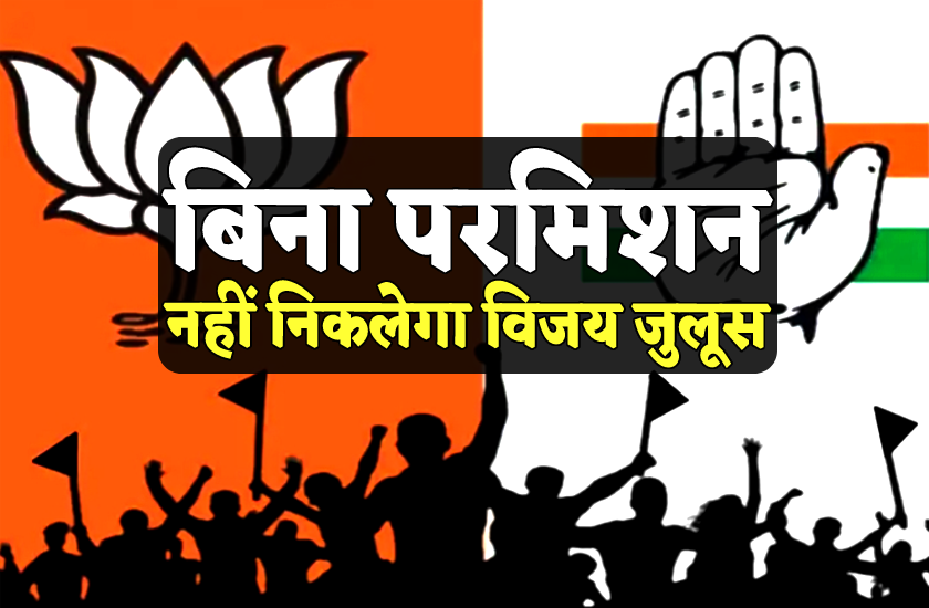 शनिवार को कलेक्टर की ओर से जारी आदेश के तहत मतगणना के दौरान बिना अनुमति चुनाव परिणाम आने के बाद प्रत्याशी या कार्यकर्ताओं द्वारा विजयी जुलूस निकालने की अनुमति नहीं रहेगी। मतगणना स्थल के आसपास धारा 144 प्रभावशील रहेगी। 5 से अधिक लोग एक जगह खड़े नहीं रह सकेंगे। नियम का उल्लंघन करने वाले व्यक्ति के खिलाफ कानूनी कार्रवाई की जाएगी। जीत के बाद जुलूस निकालने के लिए विजयी उम्मीदवारों को अनुमति लेनी होगी। साथ ही विजयी जुलूस प्रशासनिक निगरानी में निकाला जाएगा।