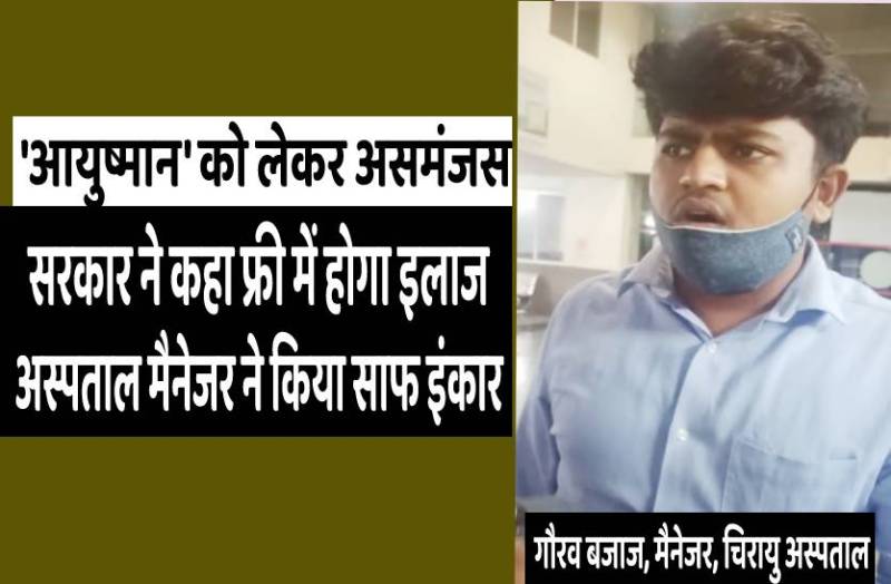 सोशल मीडिया पर आयुष्मान योजना के तहत कोविड मरीजों के इलाज से इंकार करने का ये वीडियो भोपाल शहर के चिरायु अस्पताल का है। जो शख्स वीडियो में आयुष्मान योजना के तहत कोविड मरीजों के इलाज से इंकार कर रहा है वो चिरायु अस्पताल का मैनेजर गौरव बजाज है। जो वीडियो में पहले तो अपना परिचय देता है और फिर कहता है कि अस्पताल के मालिक डॉक्टर अजय गोयनका के आदेशानुसार अस्पताल में कोविड मरीजों के इलाज के लिए आयुष्मान कार्ड मान्य नहीं है। और आयुष्मान कार्ड से कोविड मरीजों का इलाज नहीं किया जाएगा। जब मरीज के परिजन ने उनसे पूछा कि जब सरकार ने चिरायु अस्पताल को अपनी सूची में रखा है तो फिर आखिर क्यों यहां पर कोविड मरीजों का आयुष्मान कार्ड से इलाज नहीं किया जा रहा है तो मैनेजर गौरव बजाज ने धमकी भरे लहजे में कहा कि वो इसका जवाब देने के लिए बाध्य नहीं है और सरकार को इसका जवाब दे दिया गया है। इतना ही नहीं जब उनसे और सवाल पूछने की कोशिश की गई तो उन्होंने वीडियो बंद कर अस्पताल से बाहर निकल जाने के लिए कहा और गार्ड से मरीज के परिजन को अस्पताल से बाहर फेंकने के लिए कहा।
