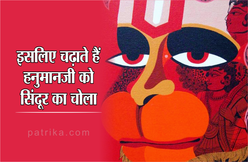 भोपाल के पंडित जगदीश शर्मा के मुताबिक कथा में इन प्रसंगों का उल्लेख है कि जब श्रीलंका से विजयी होकर रामसेना अयोध्या पहुंच गए थे। उत्सव की तैयारी थी, तभी सीता माता हनुमान की भक्ति से बेहद प्रसन्न थी, तो उन्हें उपहार देना चाहती थी। हनुमानजी कुछ भी उपहार नहीं लेना चाहते थे। इस पर हनुमानजी से अपनी मनपसंद चीज मांगने का आग्रह किया। इस पर हनुमानजी ने सीतामाता से कहा कि आपकी सबसे प्रिय चीज क्या है। इस पर सीता माता ने कहा कि मेरी सबसे प्रिय चीज ये सिंदूर है। सीतामाता उस समय श्रृंगार करते हुए अपनी मांग में सिंदूर लगा रही थीं। तभी हनुमानजी ने जिज्ञासावश पूछ लिया कि इससे क्या होता है। इस पर सीता माता ने जवाब दिया था कि इससे मेरे स्वामी श्रीरामजी की आयु और सौभाग्य बढ़ जाता है। यह सुनकर हनुमानजी बेहद उत्साहित हो गए और उन्होंने सोचा कि एक चुटकीभर सिंदूर से जब मेरे भगवान की आयु और सौभाग्य बढ़ जाता है तो क्यों न मैं पूरे शरीर पर ही सिंदूर लगा लूं, जिससे मेरे भगवान श्रीराम हमेशा-हमेशा के लिए अमर जो जाएंगे और उनकी कृपा मुझ पर हमेशा बनी रहे। इसके बाद हनुमानजी गए और पूरे शरीर पर सिंदूर लगा लिया। यह नजारा देख सीतामाता भी भाव विभोर हो उठी।